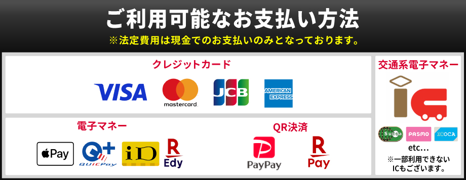 お支払いは現金の他、カードも取り扱いしています!※法定費用は現金のみ。